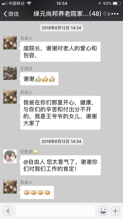 我爸在你们那里开心,健康,与你们的辛苦和付出分不开的,我是王爷爷的女儿,谢谢大家了。